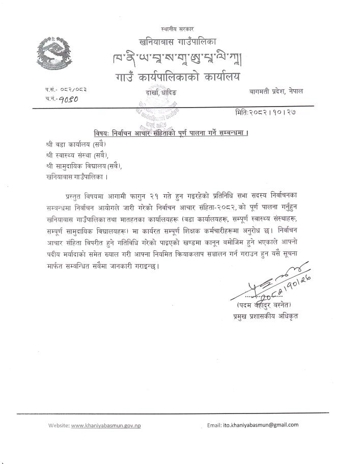 प्रमुख प्रशासकीय अधिकृत :9851332458 -(पदम बहादुर बस्नेत)\
